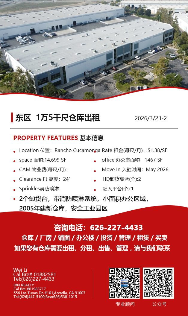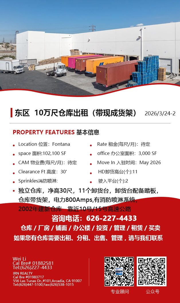 【仓库出租】Wei Li专业商业地产团队提供,2026年3月26日,洛杉矶仓库出租更新,电话 626-227-4433,官网 www.51warehouse.com