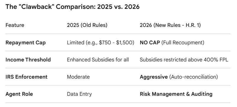 Bieu Lam Insurance (CCYP) 向所有家庭发出紧急提醒:2026 年,联邦《工作家庭减税法案》(H.R. 1) 正式取消了医保补贴的“还款上限”。这意味着,如果您在申请保险时少报了收入,年底报税时,国税局 (IRS) 将不再设置还款上限,而是要求您全额退还所有多领的补贴。在如此严苛的政策下,一个只会“填表”的新手经纪人可能会让您在明年面临巨额税单。