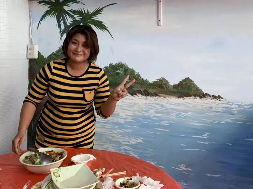 在码头与食肆,我们见到了皮肤黎黑的典型渔家美女,如今做了老板娘,先前给她拍照,一个劲地说“不要了啦”,最后才说自己年轻时也是大美女的,摆了个“V”字给我拍。
