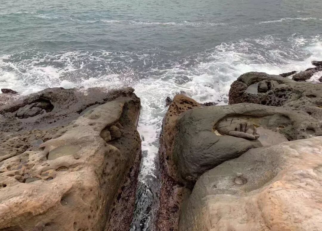 极其震撼的龙磐公园!俯瞰太平洋,悬崖上的大风几乎要把我们吹翻,近海处的海水有三种颜色,互相交织,天气晴好,绝对是台湾最美的海岸线。