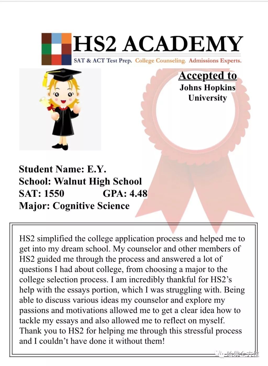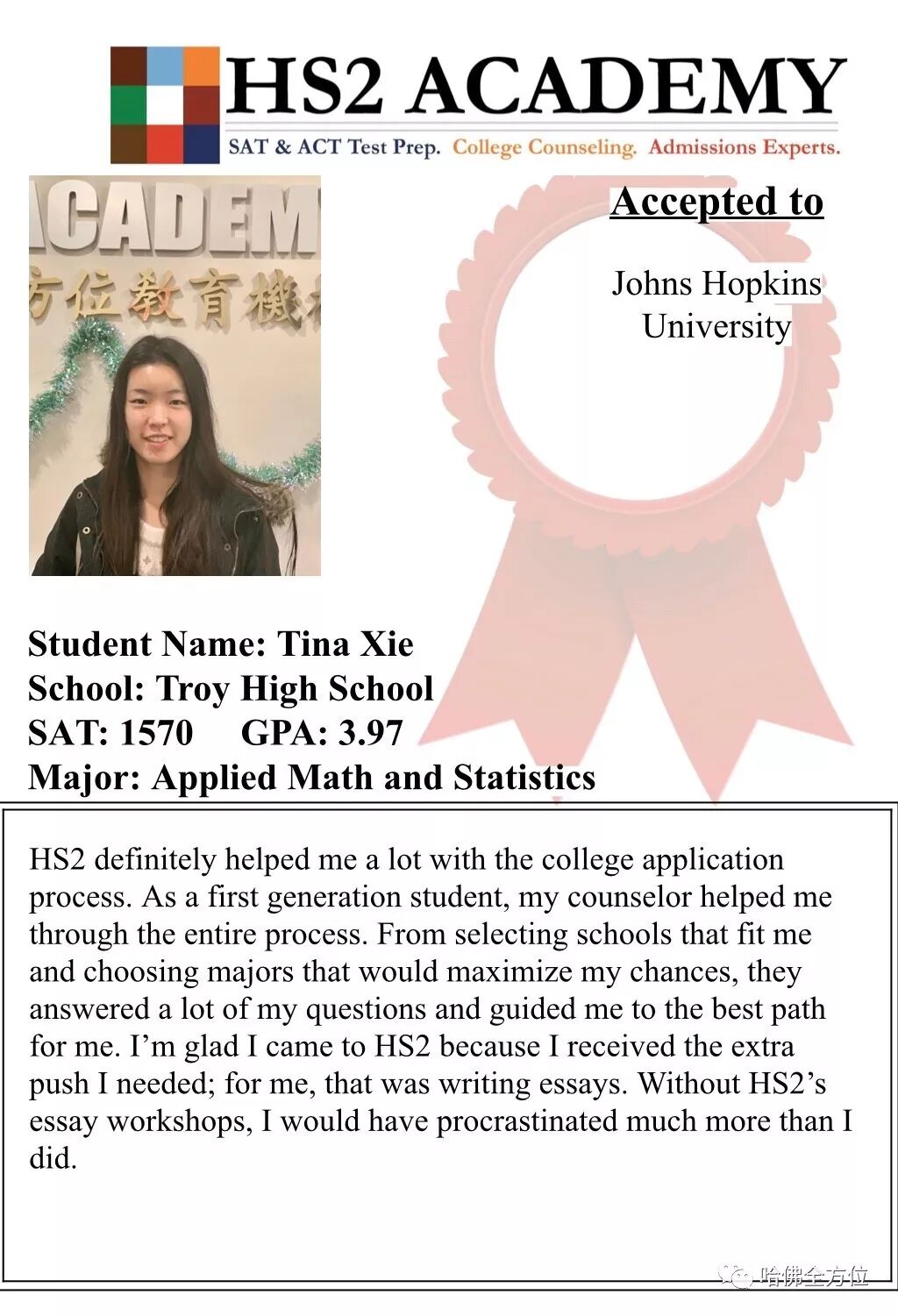 HS2 一路輔導我,如果沒有他們,我絕對無法取得現在的成績。我超愛我HS2 的升學顧問,他解答我所有疑問,對我幫助很大,他額外努力的讓我的申請表上每個細節都完美呈現。我進入了我夢想中的大學,我知道如果沒有HS2 我是辦不到的。HS2 的每個人在這裡都很棒,像是櫃檯人員以及老師。我真的覺得他們很在乎我,願意盡一切力量幫我,我非常感恩,謝謝你們!