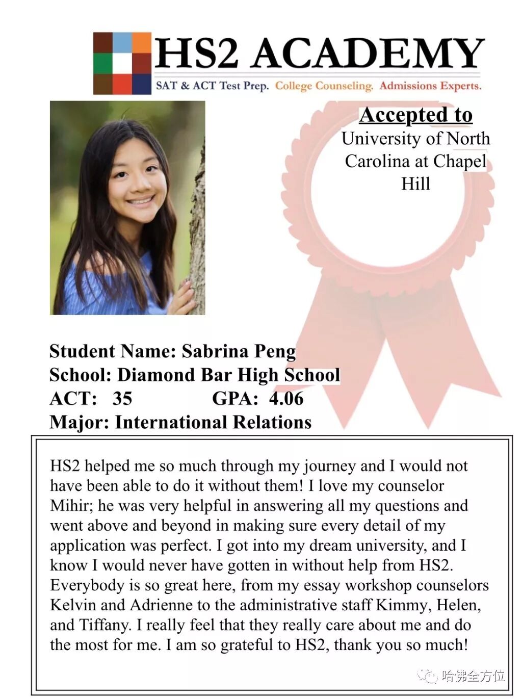 HS2 Academy 絕對是我大學申請的過程中的重大幫助。作為第一代移民,我的HS2 顧問協助我走過整個流程,從選擇適合我的學校,擴大化我錄取的機會,他們都為我解答而且引導我走最好的路。我很慶幸我來到了HS2 Academy ,得到了額外的協助,像是撰寫申請論文的事,如果沒有HS2 的論文工作課,我可能會一直拖延我該好做的事。
