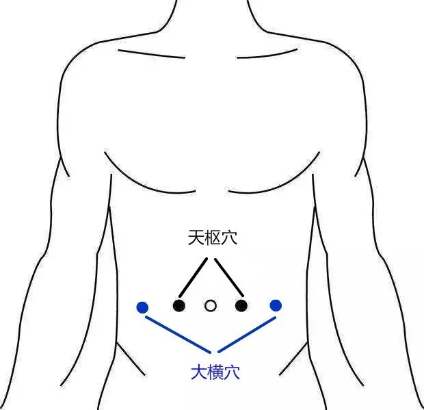 取穴:肚脐左右旁开四寸(一横掌的宽度是三寸,再加拇指的宽度,即四寸)。
