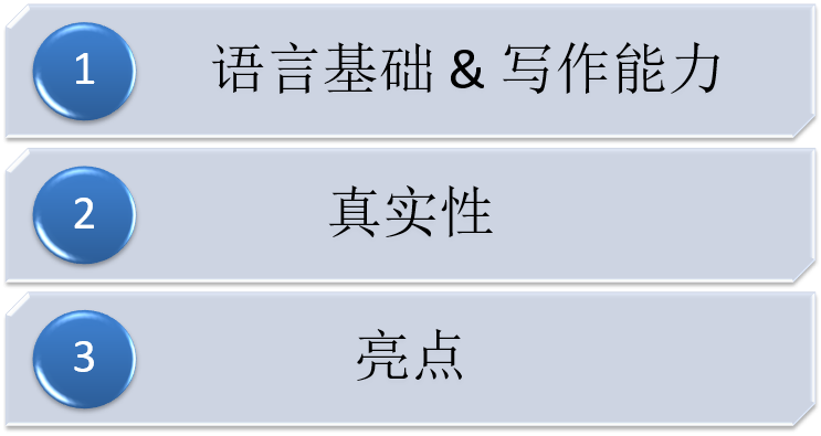 招生官是你的Essay的"观影者"。作为"观影者",能让他们有看下去的欲望是第一点,让他们看出你的亮点是其二。不管是什么样的Topic,招生官心里的几杆秤申请者一定要牢牢把握。招生官会评估基本的语言运用和写作能力,他们会思考文章的真实性,他们也会寻找文章的亮点。