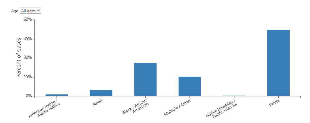 其中, 白人占最高比例52.2%, 其次是非裔, 占26.1%。