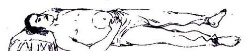 凡摩腹时,须凝神静虑于矮枕,平席正身,仰卧齐足。手指轻摩缓动,将一至八式依次作完为一组,每次应连作7组。作毕,遂起坐,按第九式摇转,左右各21次。