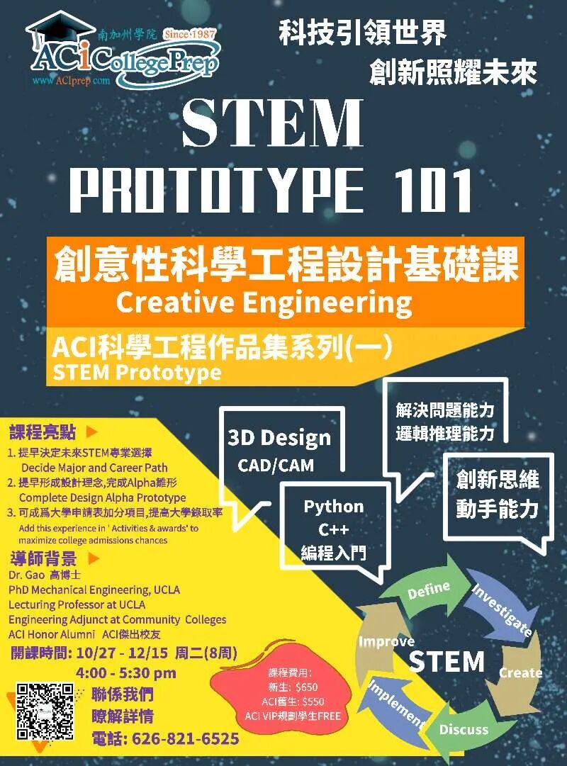创意性科学工程设计涉及STEM学科的基础理论,包括设计方法,设计软件使用,编程基础,实操编程等等。对有志选择STEM专业的学生,能够极大丰富课外活动背景,成型的作品对于大学申请是强有力的加分项目。还等什么,快快报名吧!