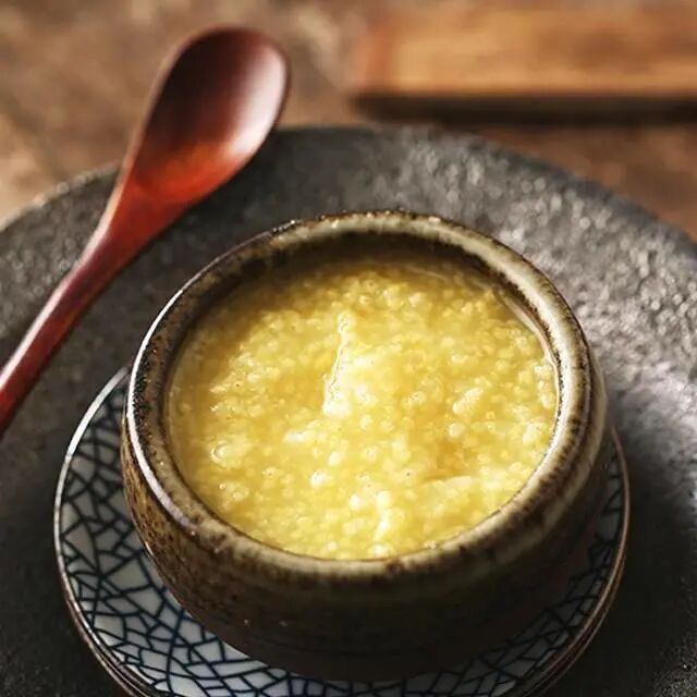 小宝宝开始添加辅食时,小米粥非常不错,尤其是小米的粥油,它含有丰富的能量维生素B,可以促进肠胃蠕动,增进食欲。