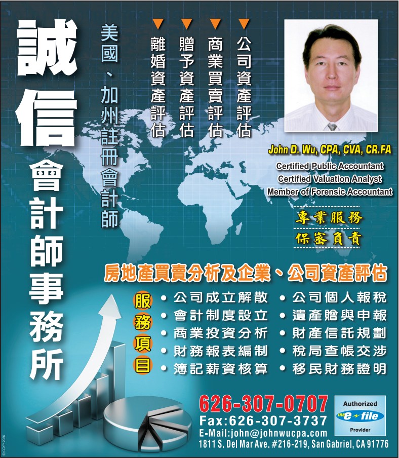美國四大會計師事務所經驗。美式流利英文。專精新移民中國資產,美國稅務規劃。國稅局,州稅局查稅與交涉業務。國際貿易稅務。中美會計師協會創會會長。找李豪,一定好!