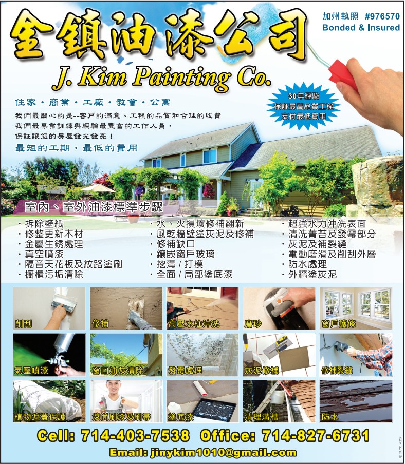 加州執照 License #946167 (C33, B),200萬責任險,100萬勞工險。25年經驗,精通中文,韓文,英文。價格合理,免費估價,誠信負責。
