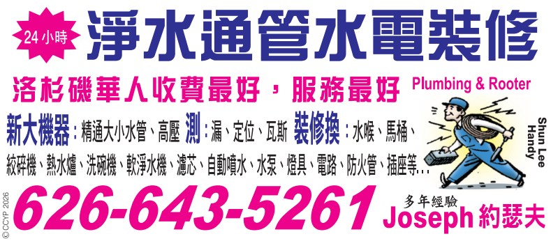 淨水通管水電裝修/#1 PLUMBING & ROOTER專精於水電工程。淨水通管水電裝修/#1 PLUMBING & ROOTER的辦公地址在504 S. Lincoln Ave., #B, Monterey Park, CA, 91755,公司電話是(626) 643-5261,公司營業時間7 DAYS(24 HRS)該商家的關鍵詞包含:大小水管 測漏 裝修 更換 熱水爐 馬桶 軟淨水器 濾芯 濾心 水喉 插座 絞碎機 自動噴水 燈劇 電路 Joseph 約瑟夫 通水道 裝修廁所 住家通水管 水電工程 水電裝修 PLUMBING ROOTER